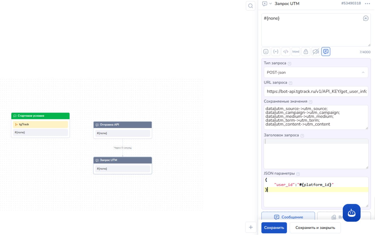 - Создайте блоки отправки POST JSON запроса при старте и стопе бота